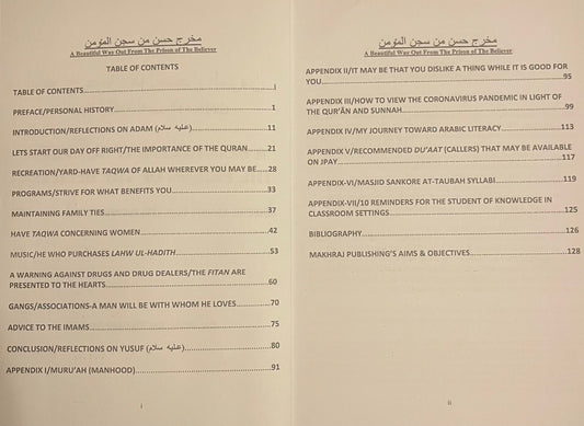 Makhraj Publishing was founded by Saalih Ibn Khalifah Santana, a Salafi Muslim who has been incarcerated since 2003. For many of those years, Saalih has served as the Imam of his facility. In that role he teaches several classes at the Masjid, delivers the Friday Khutbah, and provides counseling to his fellow prisoners.